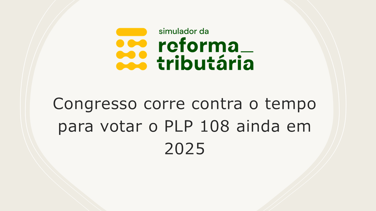 • Sem o PLP 108, o governo não pode publicar o regulamento definitivo do IBS.
